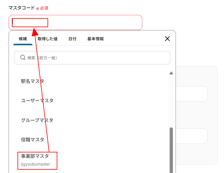 入力欄をクリックし、使用したい簡易マスタを選択してください。