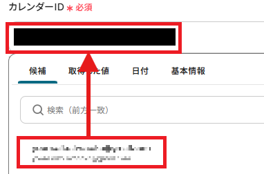 カレンダーIDを候補より入力していきます。