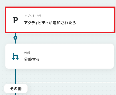 まずはこのフローボットでトリガーになっている、「アクティビティが追加されたら」というアクションを設定していきましょう。
