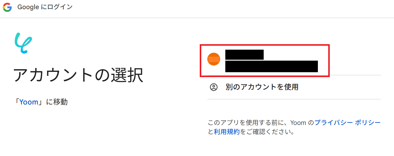 Yoomとの連携確認が出てくるので、「Sign in With Google」で進んでください。