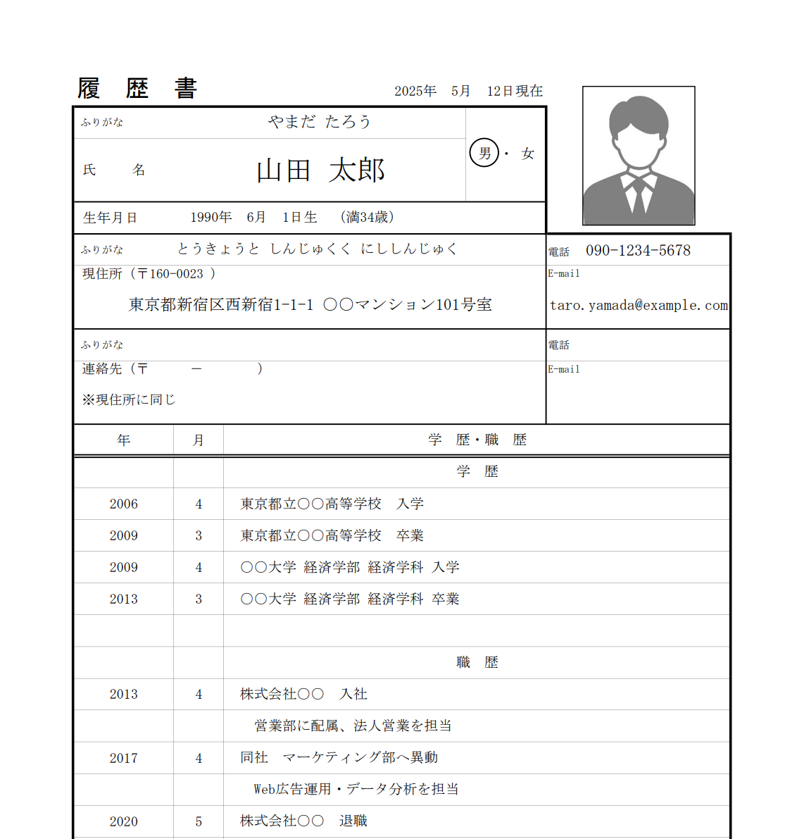 なお、今回はテストとして以下のような履歴書を添付しています。