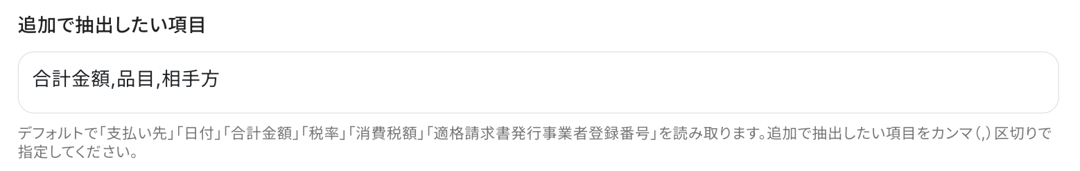 追加で抽出したい項目 :入力欄下の注釈を参照して設定してください。