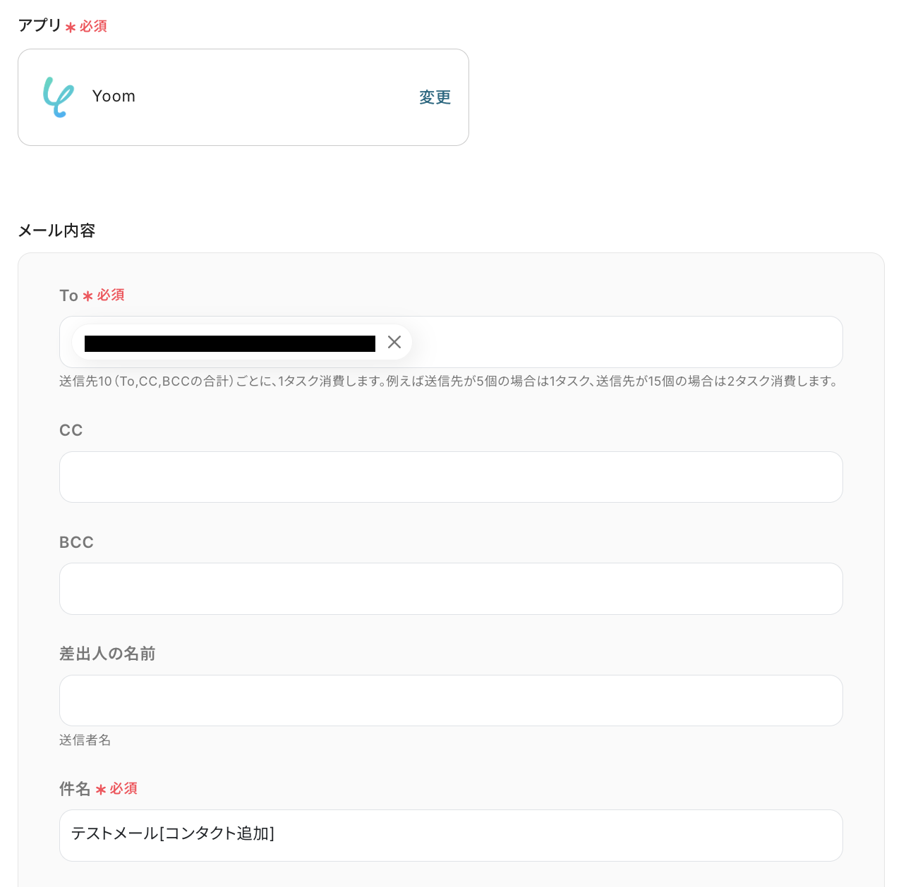 - メール機能では、通知先のメールアドレスを任意で設定できるほか、本文にフォームの回答内容を変数として埋め込むなどのカスタムが可能です