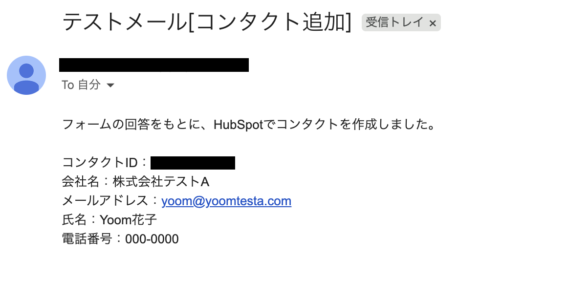 テスト成功でHubSpotに新規コンタクトが登録されています!