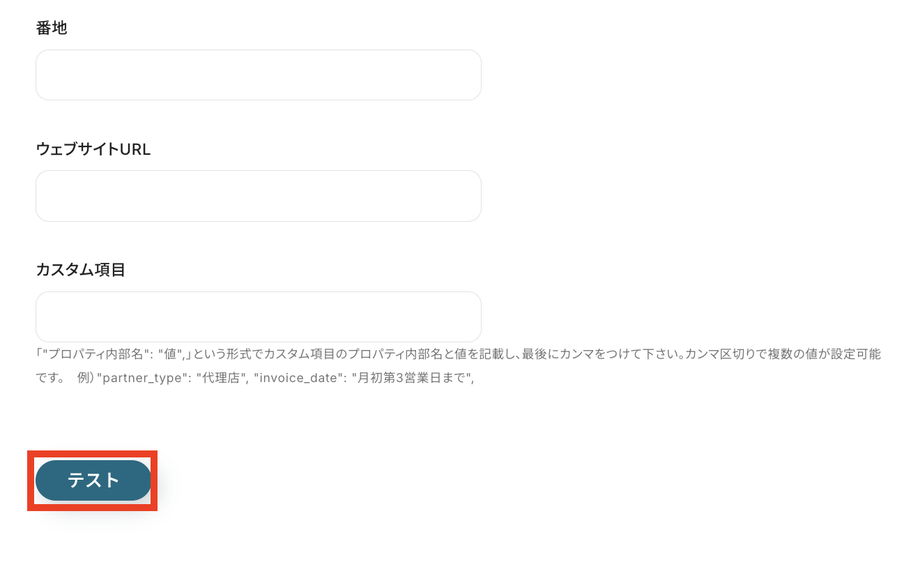 HubSpotからフローボットを起動し、請求品目や金額などの情報を入力フォームで設定すると、請求書が自動で作成されます。