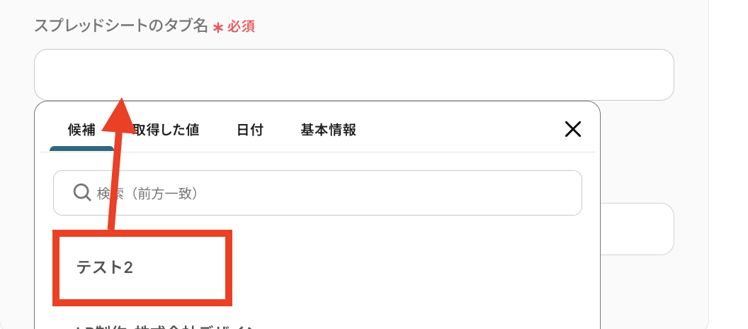 続いて、スプレッドシート内のタブ名も選択しましょう!