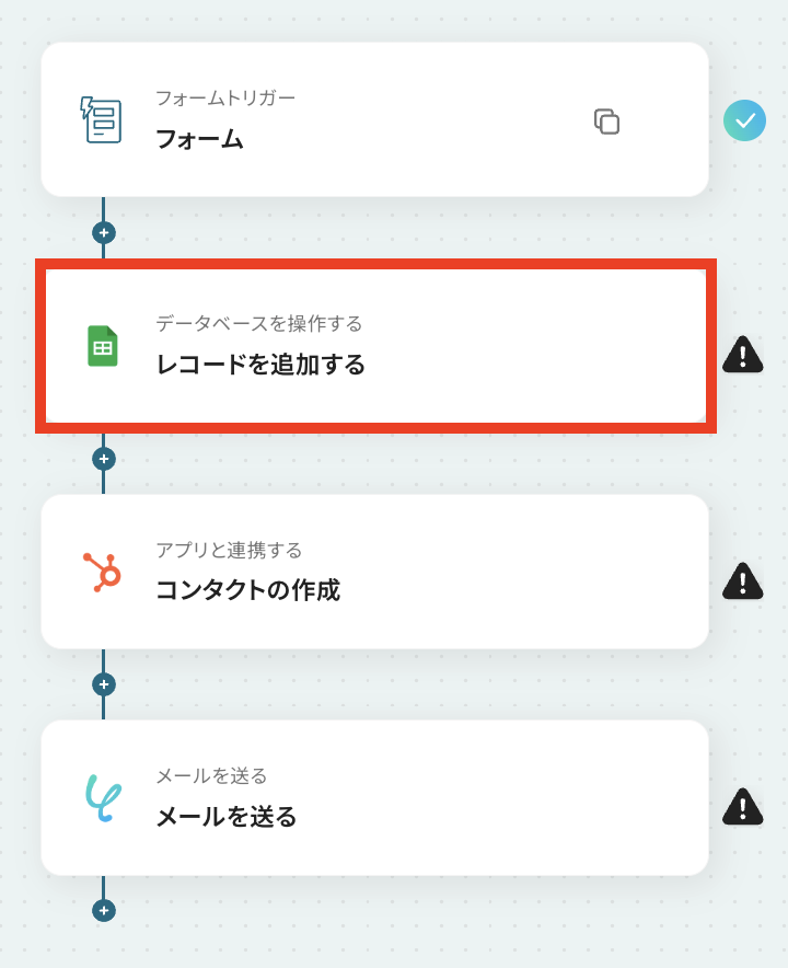 それではここから代表的な例として、フォームが送信された際にリード情報をHubSpotに登録し、その追跡情報を自動で通知するフローを解説していきます!