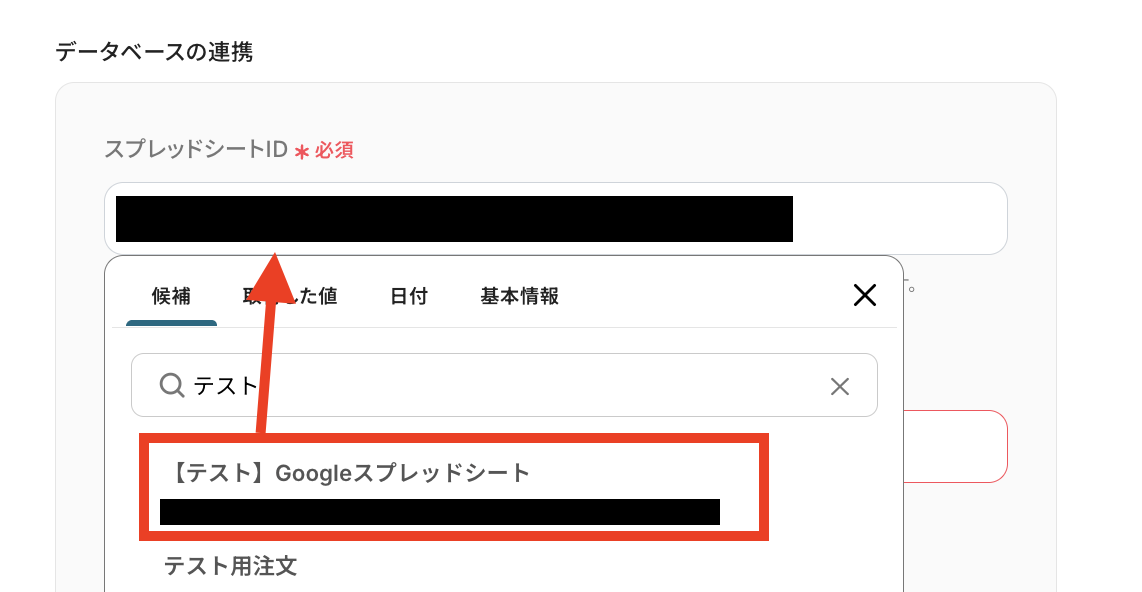 空欄をクリックして、候補の中からレコードを追加したいスプレッドシートを選択します。