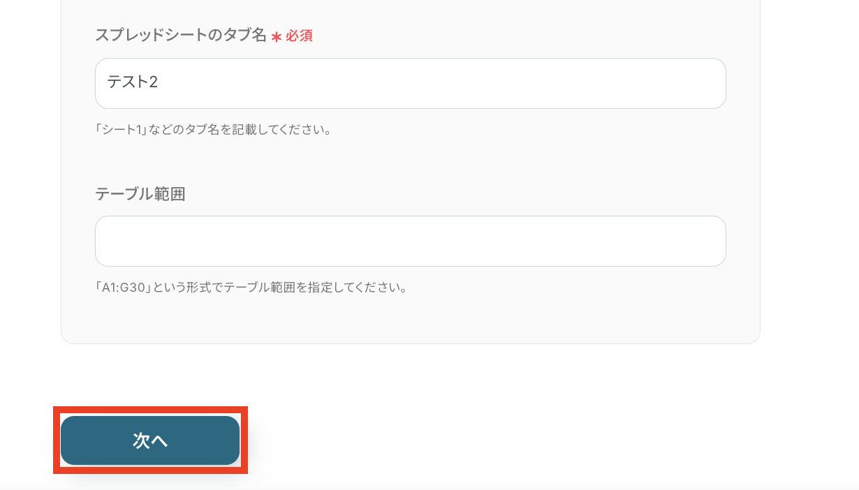 テーブル範囲を任意で設定したら、次の設定へ進みましょう!