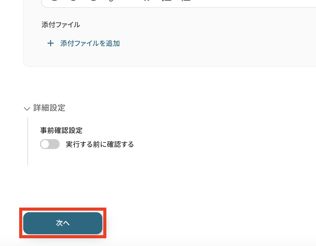 本文の作成が終了したら「次へ」ボタンをクリックします。