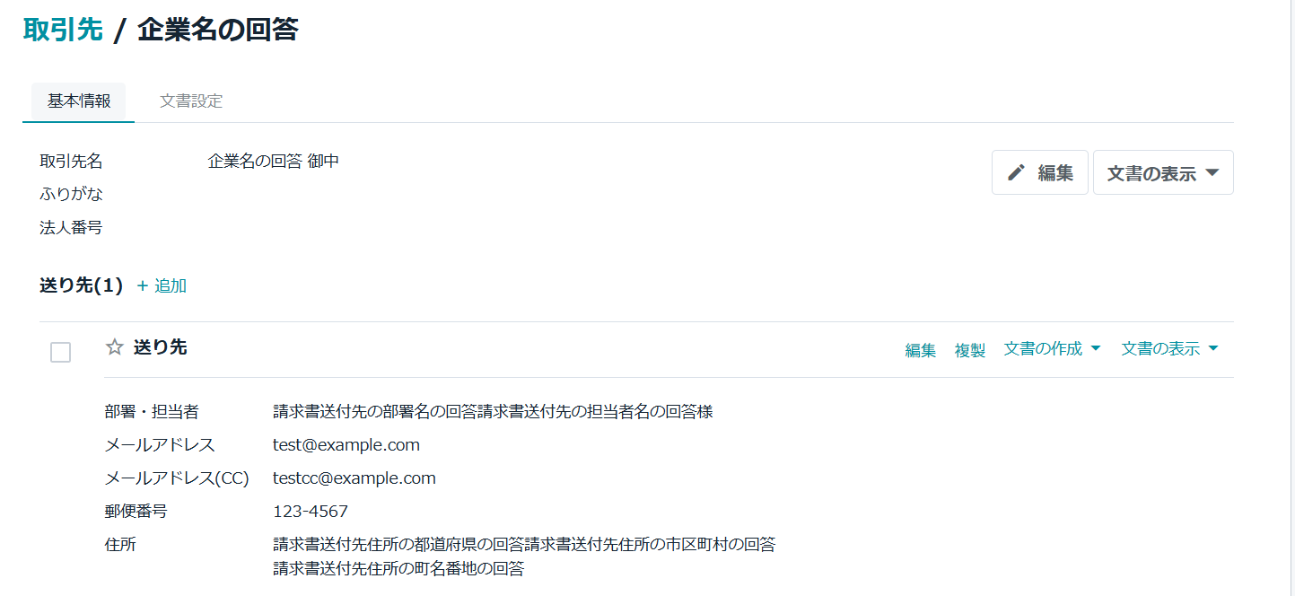 手入力やプルダウンで設定した項目は、今後このフローで追加されるすべての取引先に適用されます。