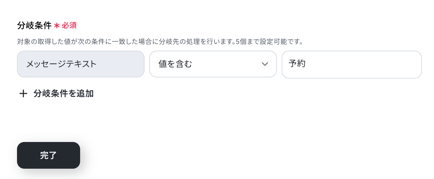 - 分岐機能で設定するキーワードは、「予約」や「アポイント」など、ユーザーの運用に合わせて任意で設定してください。