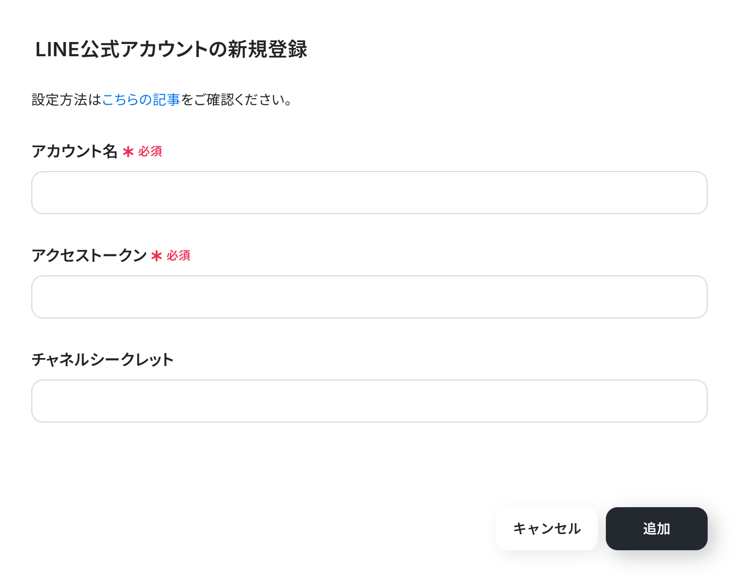 アカウント名とアクセストークンを入力し、「追加」をクリックします。