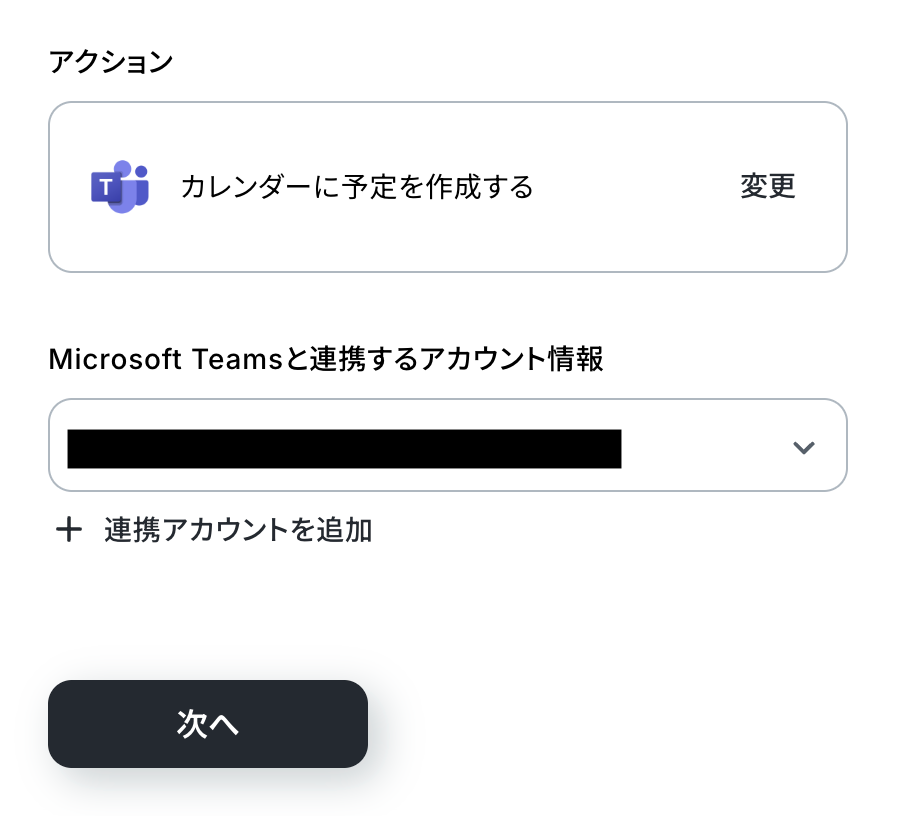 - 最後に、オペレーションでMicrosoft Teamsの「カレンダーに予定を作成する」アクションを設定し、抽出した情報をもとにイベントを作成します。