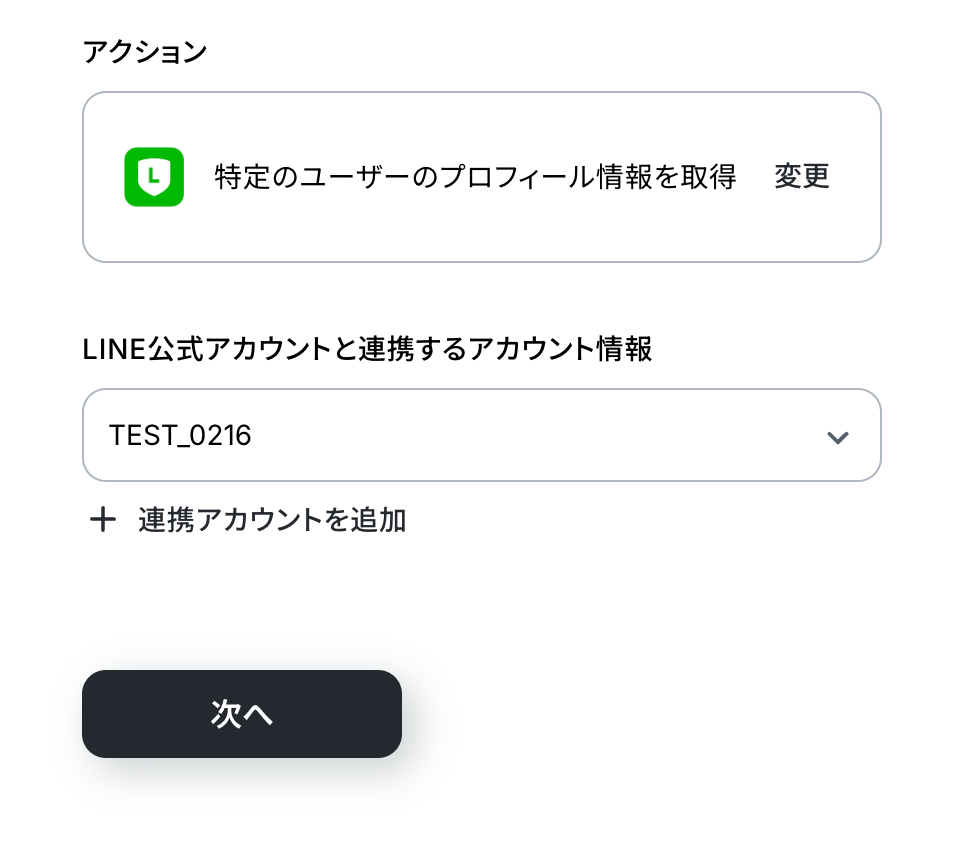 LINE公式アカウントと連携するアカウント情報に問題がなければ、「次へ」をクリックします。