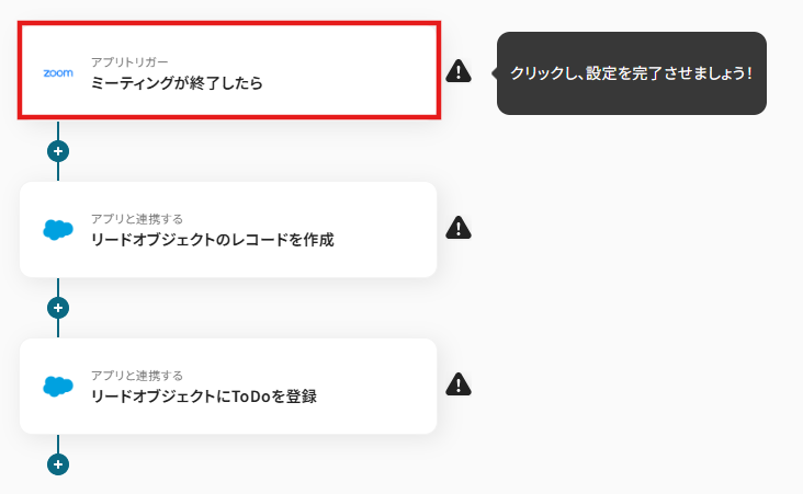 それではここから代表的な例として、Zoomでのミーティングが終了した際に、Salesforceに自動でタスクを登録するフローを解説していきます!