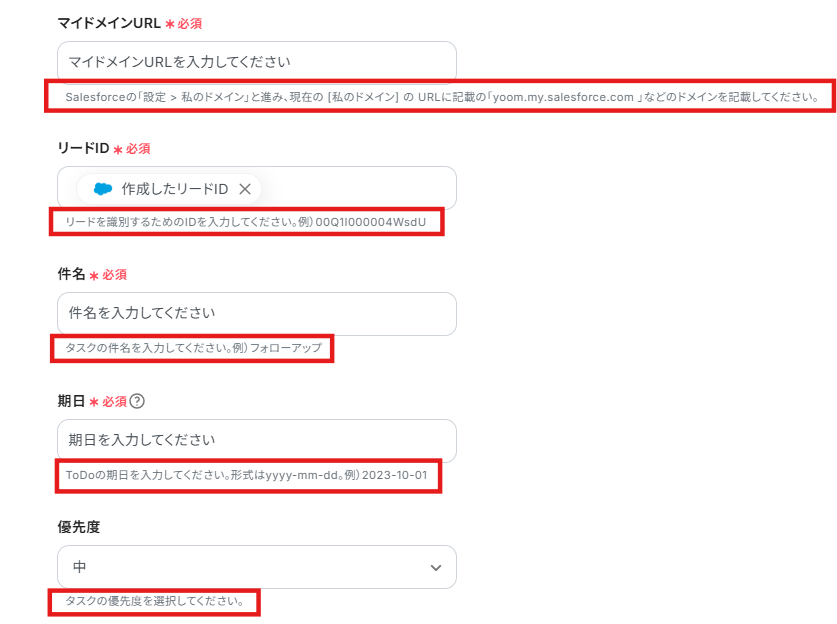 4.「リード保有者ID」と「マイドメインURL」は入力欄下の注釈を参考にして入力してください。