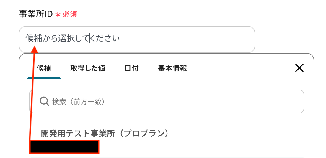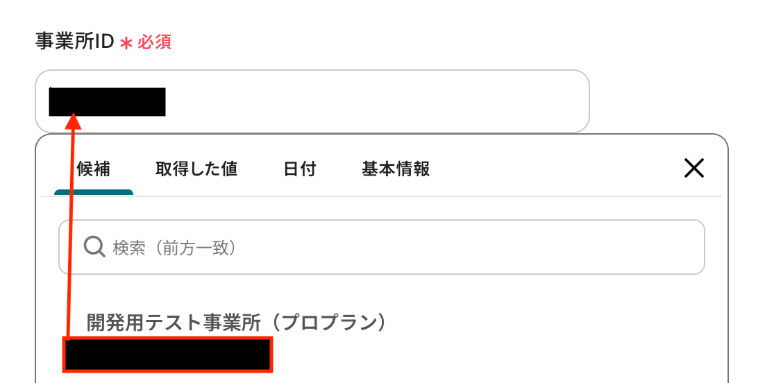 - freee会計で証憑ファイルをアップロードするアクションを設定する際に、対象となる事業所のIDを任意で設定してください。