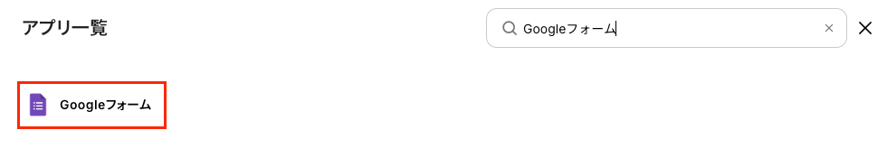 新規接続をクリックしたあと、アプリのメニュー一覧が表示されるのでGoogleフォームと検索し対象アプリをクリックしてください。