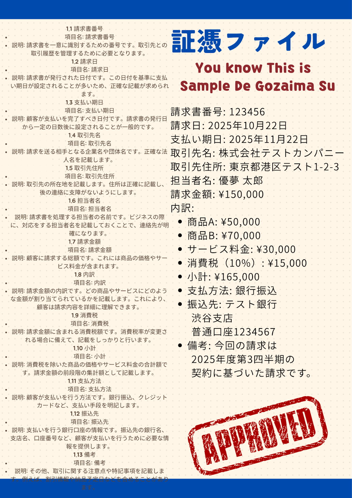 - OCR機能の設定では、お使いの請求書フォーマットに合わせて、読み取りたいテキスト項目を任意で設定してください