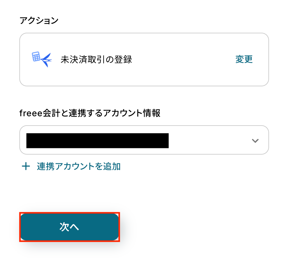 - 最後に、オペレーションでfreee会計の「未決済取引の登録」アクションを設定し、OCR機能で読み取った請求情報を登録します