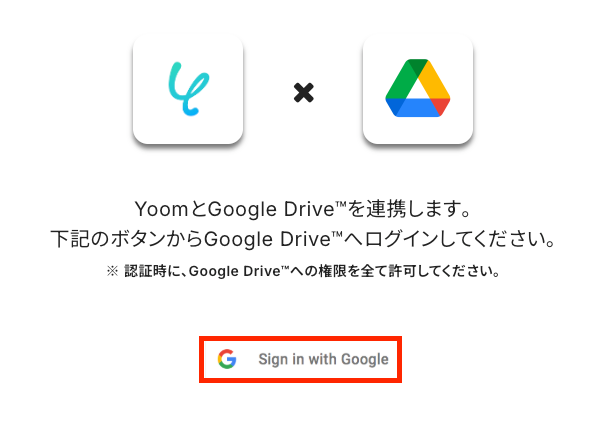 Google Driveと連携するアカウント情報に問題がなければ、「次へ」をクリックします。