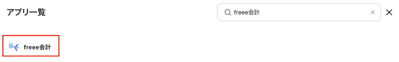 新規接続をクリックしたあと、アプリのメニュー一覧が表示されるのでfreee会計と検索し、対象アプリをクリックしてください。