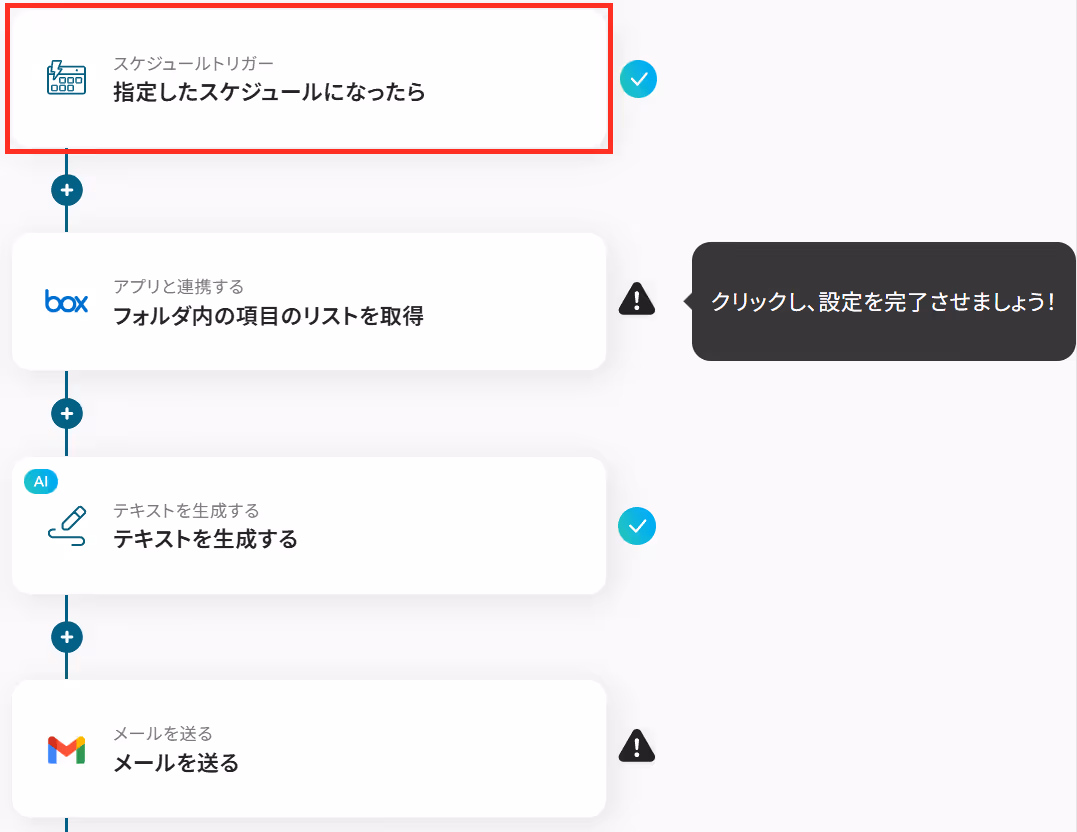 それではここから代表的な例として、定期的にBoxの特定フォルダのリストを取得し、Gmailでリマインドするフローを解説していきます!
