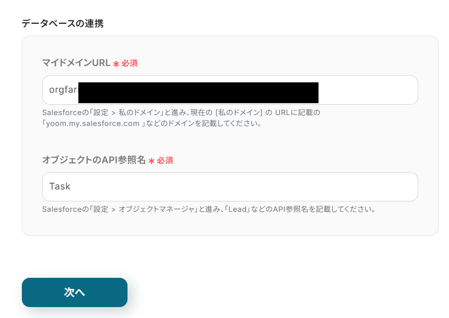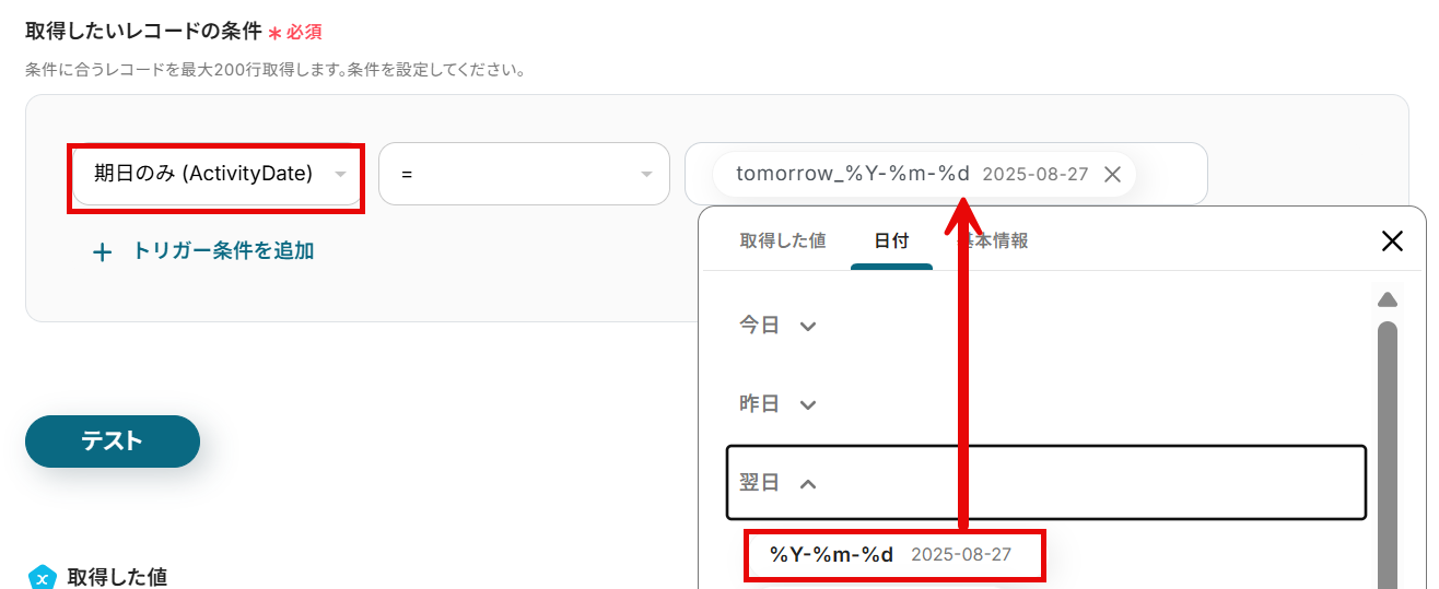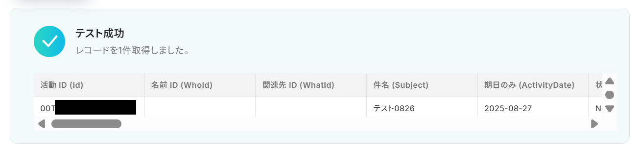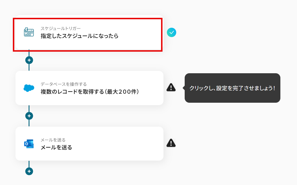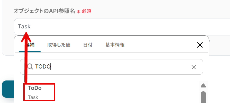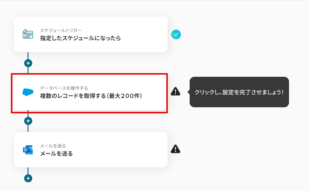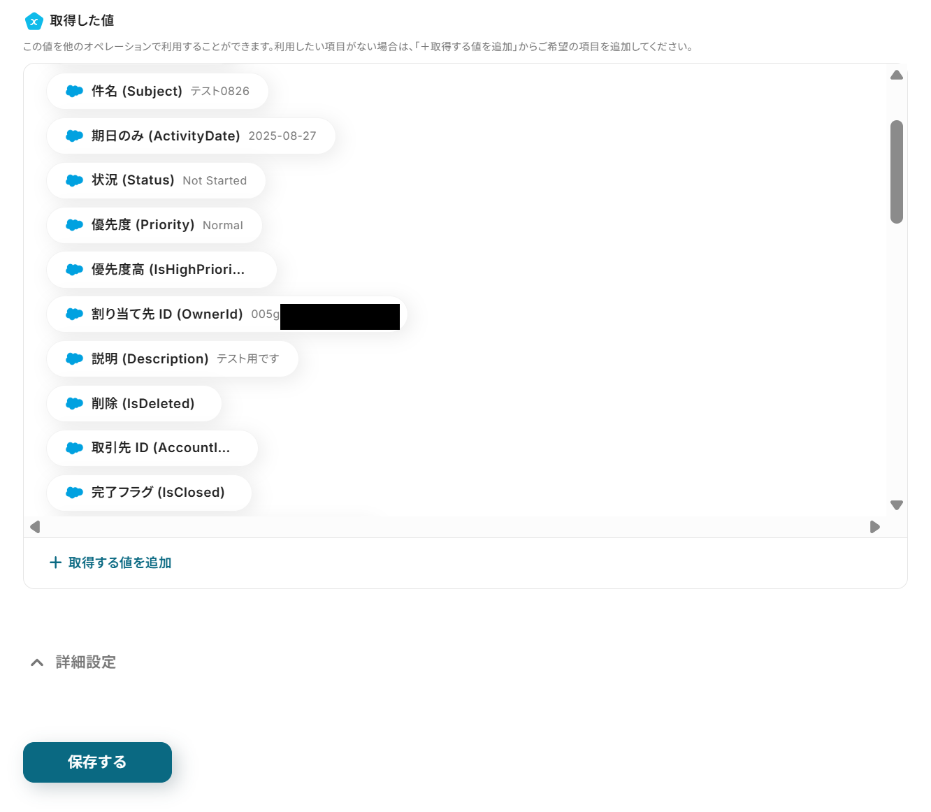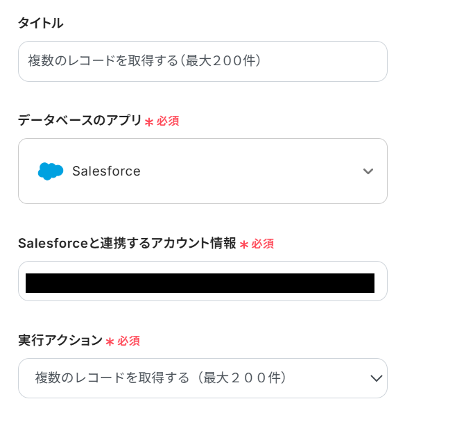ここでは、Salesforceからタスクのレコードを取得する設定を行います。