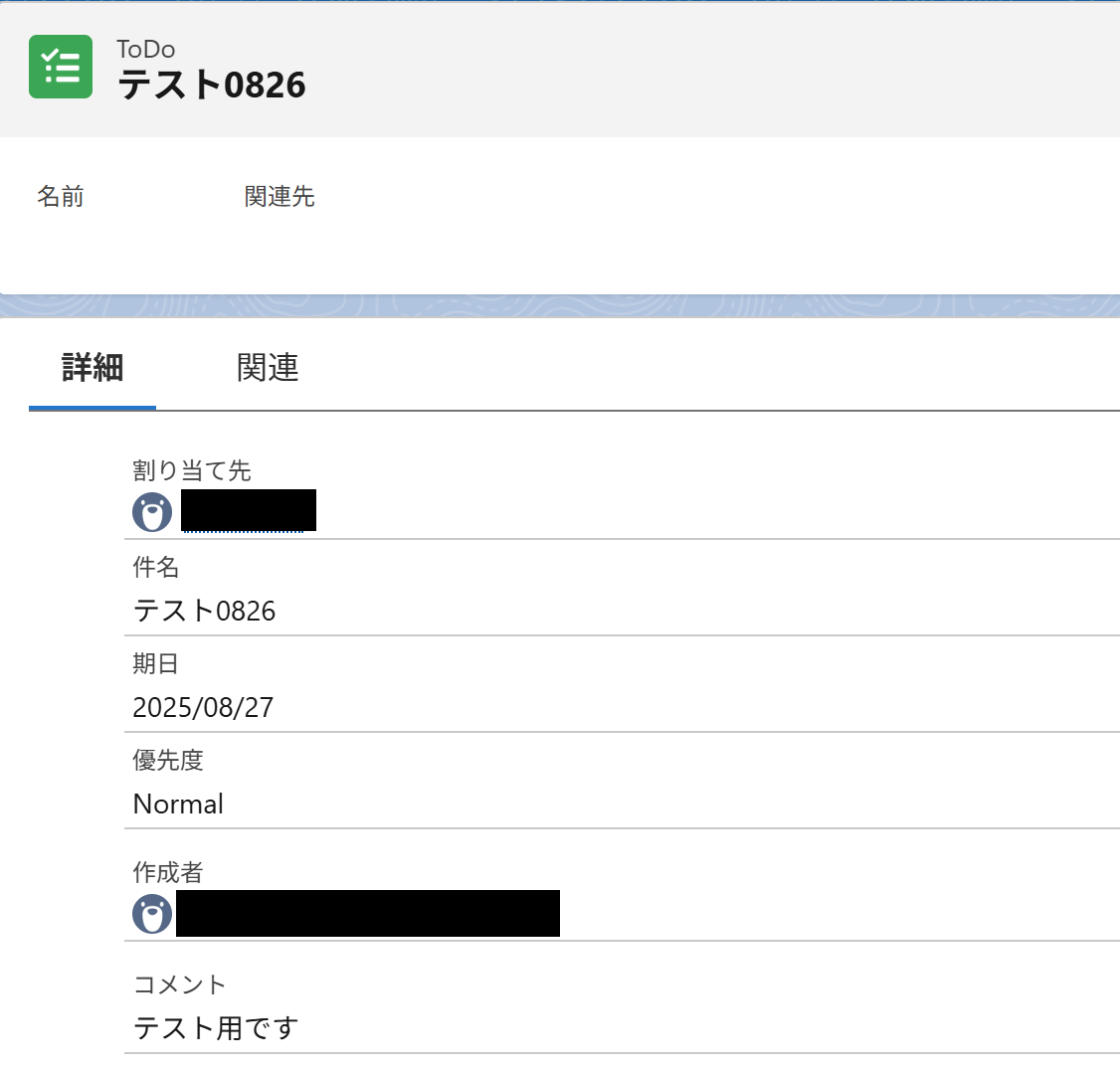 テスト用にSalesforceのToDoリストを追加しておきます。