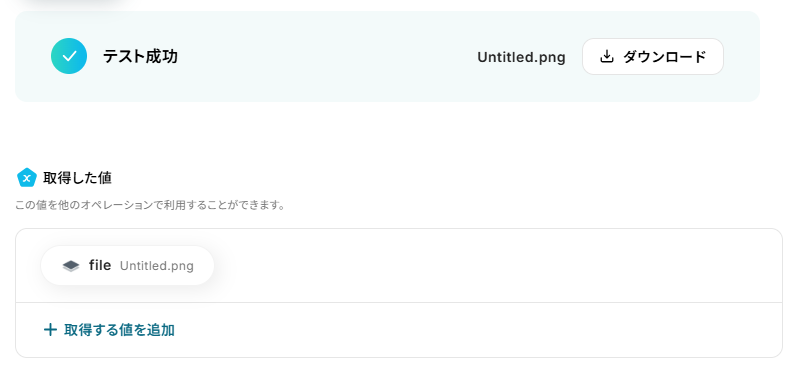 ※ダウンロードできるファイルの容量は最大300MBです。ただし、アプリの仕様によっては300MB未満になることがあるので、ご注意ください。 ※トリガー、各オペレーションでファイルを使用する際は、ファイルの容量制限について をご参照ください。
