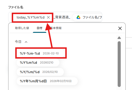 日付_背景透過_(取得した値から)ファイル名/フォルダ名