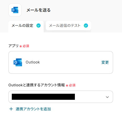 再度、Outlookと連携するアカウントに間違いがないかを確認しましょう。
