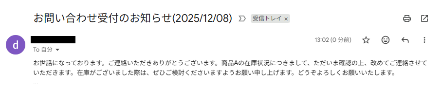 「毎日大量に届く問い合わせメールへの返信に追われて、他の業務が進まない…」 「不在時の定型的な自動返信だけでなく、メールの内容に応じた返信を自動化できないか…」 このように、日々のメール対応業務に多くの時間を費やし、非効率だと感じていませんか? もし、受信したメールの内容をAIが自動で解析し、問い合わせ内容に応じた適切な回答文を生成して自動で返信する仕組み があれば、こうした手作業による返信業務の負担から解放されます。 顧客対応の質を落とすことなく、より重要なコア業務に集中できる貴重な時間を生み出すことができます! 今回ご紹介する自動化の設定は、ノーコードで簡単に設定でき手間や時間もかからないので、ぜひ自動化を導入して作業をもっと楽にしましょう!