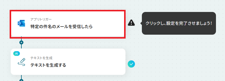 ステップ3:Outlookのトリガー設定 ここからはフローボットの設定を進めていきます。 まず、「特定の件名のメールを受信したら」をクリックしてください。