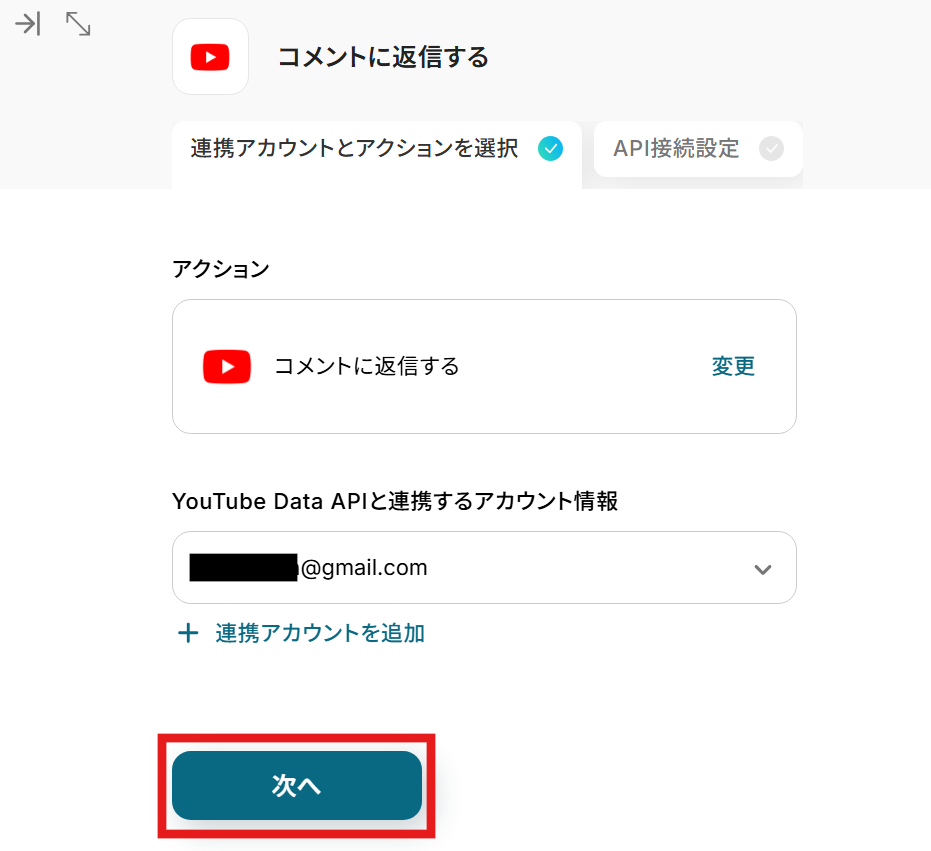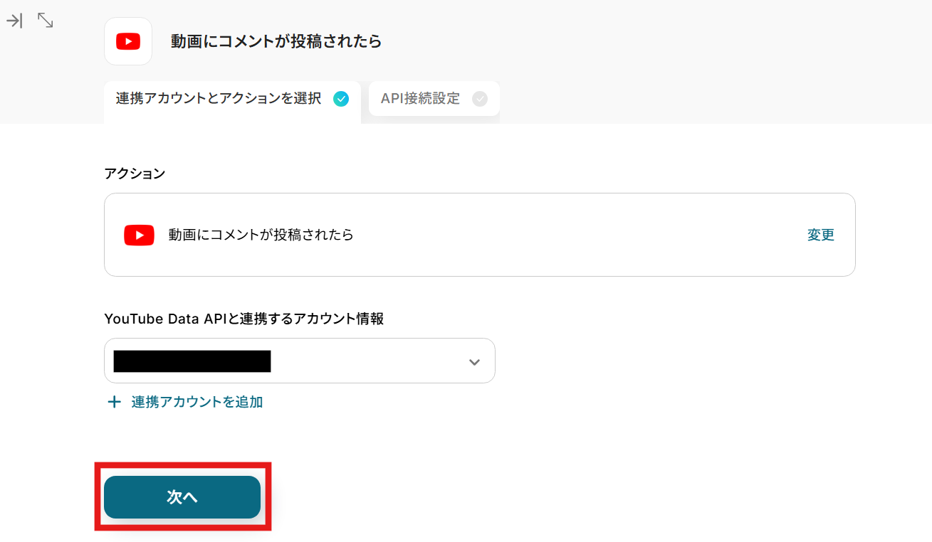 YouTubeと連携するアカウント情報はトリガー設定時と同じアカウントを選択してください。