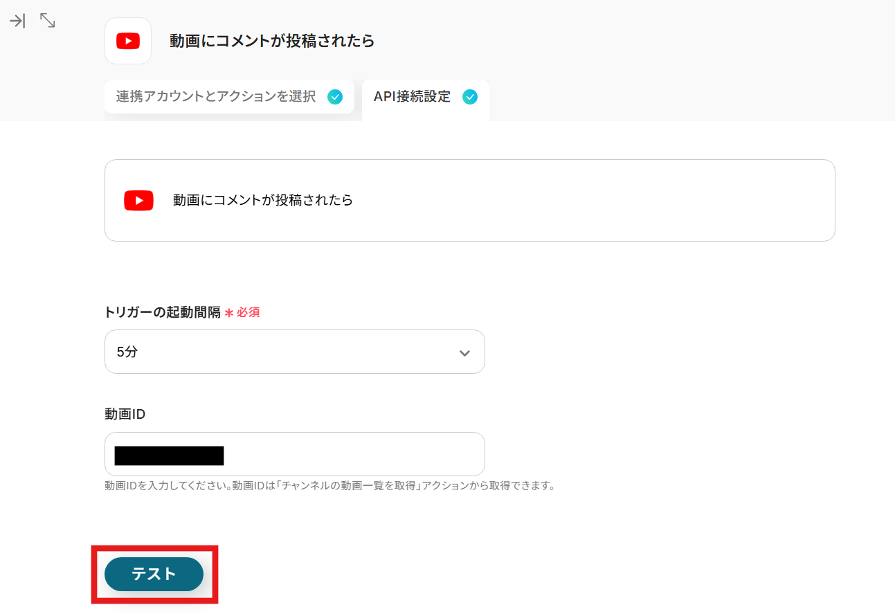 - YouTube Data APIのトリガー設定では、コメント返信を自動化したい対象の動画IDを任意で設定してください