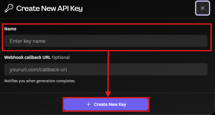 [+Create New Key] を選択し、任意の名前を付けて保存します。