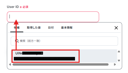 User IDはボックスの候補から選択します。
