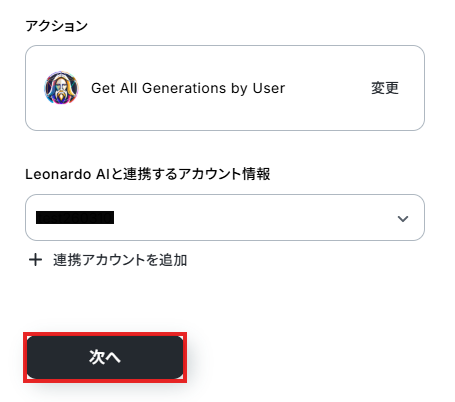- Leonardo AIの「Get All Generations by User」アクションでは、履歴を取得したい対象のUser IDを任意で設定してください。