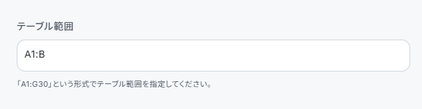 スプレッドシートIDとスプレッドシートのタブ名を入力します。