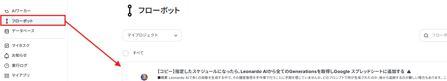 また、コピーしたテンプレートはフローボットに保存されているので、ここからも開くことができます。