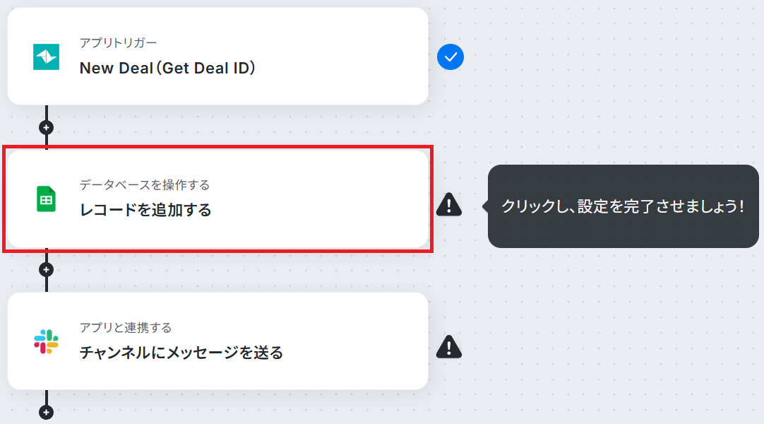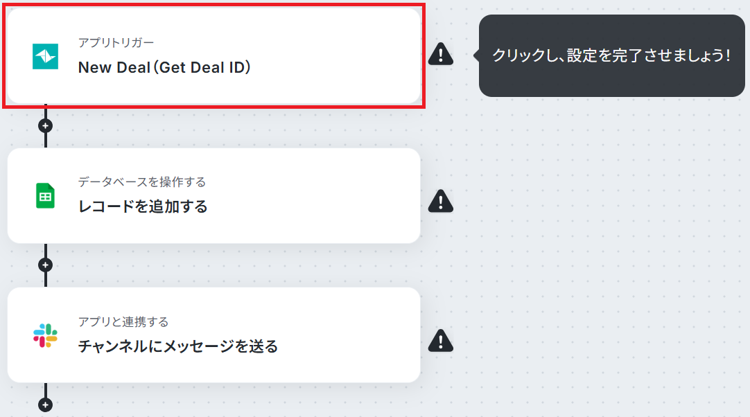 それではここから代表的な例として、TeamleaderでDealが作成されたら、Google スプレッドシートへの追加とSlackでの通知を自動化するフローを解説していきます!