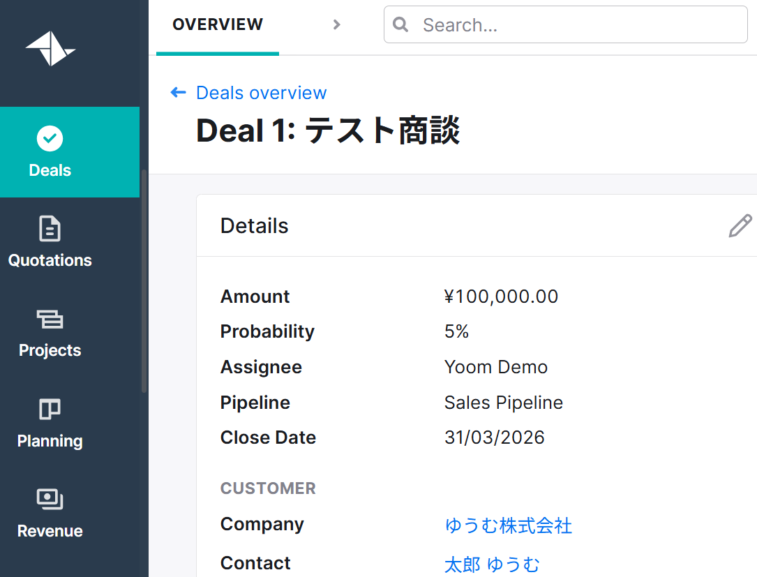 はじめに準備として、テスト用のDealを作成してください。