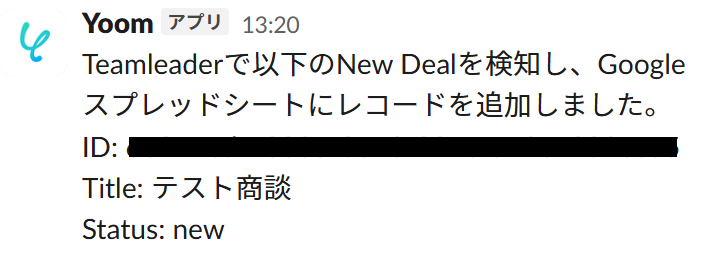 Teamleaderの商談情報がSlackに通知されました!