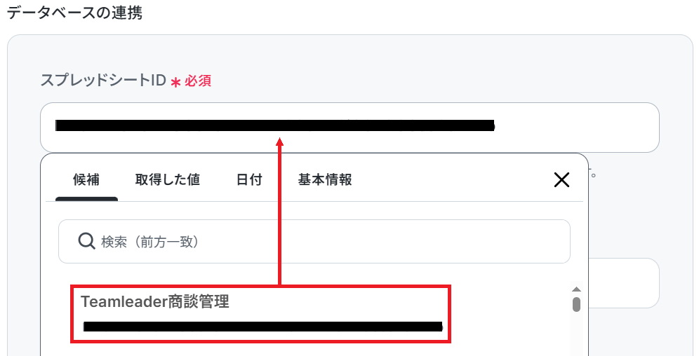 次に、先ほど用意したシートのスプレッドシートIDを候補から選択しましょう。
