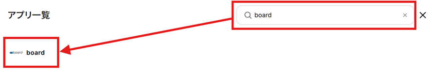 「新規接続」を選択すると「アプリ一覧」が表示されます。boardを検索して選択しましょう。