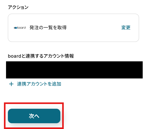 「boardと連携するアカウント情報」を確認し、「次へ」をクリックして進んでください。