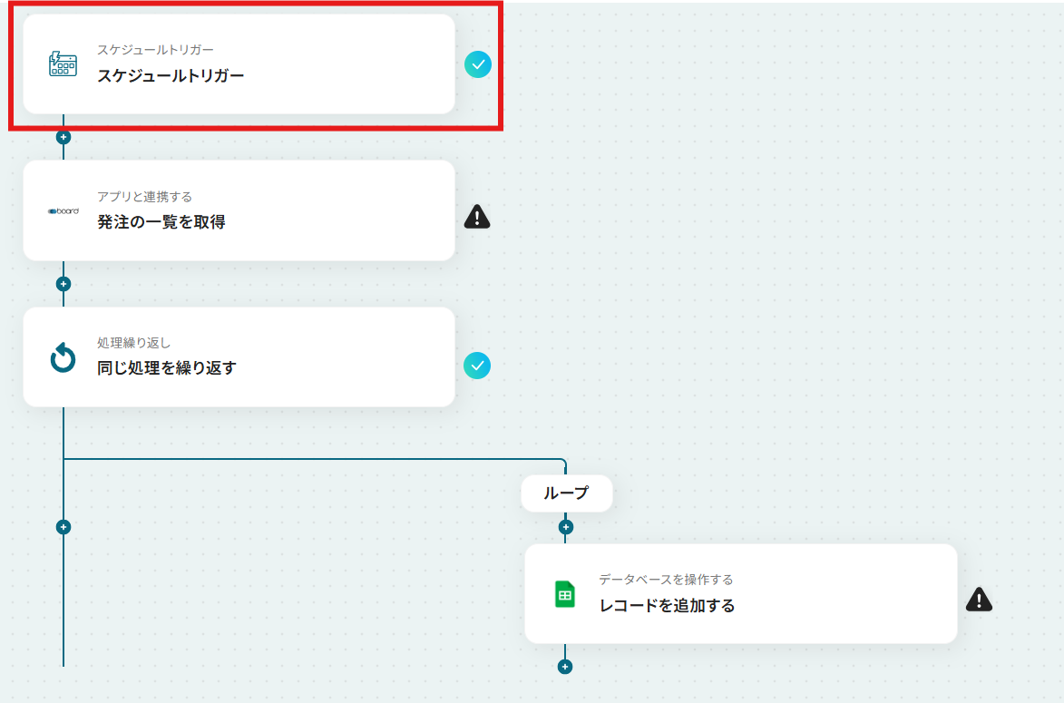 それではここから代表的な例として、毎朝boardで前日分の発注一覧を取得し、Google スプレッドシートに自動で追加するフローを解説していきます!