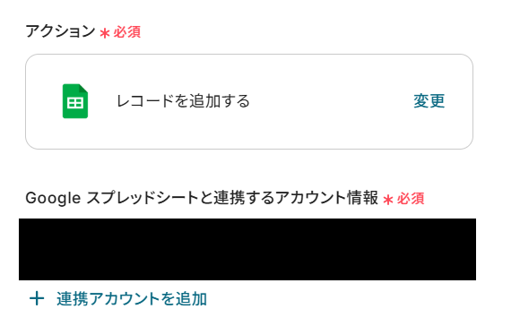 Google スプレッドシートにレコードを追加する際に使用したい値を設定してくださいね。